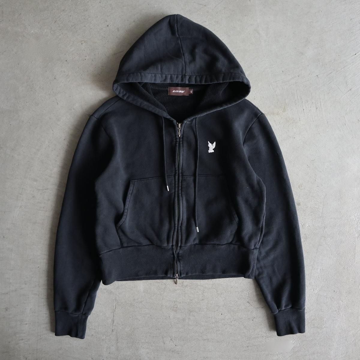 MASU BOYSラインのZIP-UPフーディ。目の詰まった裏毛素材を使用。硫化染料による製品染めと、バイオウォッシュによって長年着こまれたような色褪せたような風合いが追求された。着丈が短いブランドらしいシルエットが特徴的。逆開ファスナーによってシルエットの調節が可能。胸にはシグネチャーである天使のアイコンが刺繍さている。MASUのアウターとの相性は勿論、1枚でも存在感のあるフーディ。