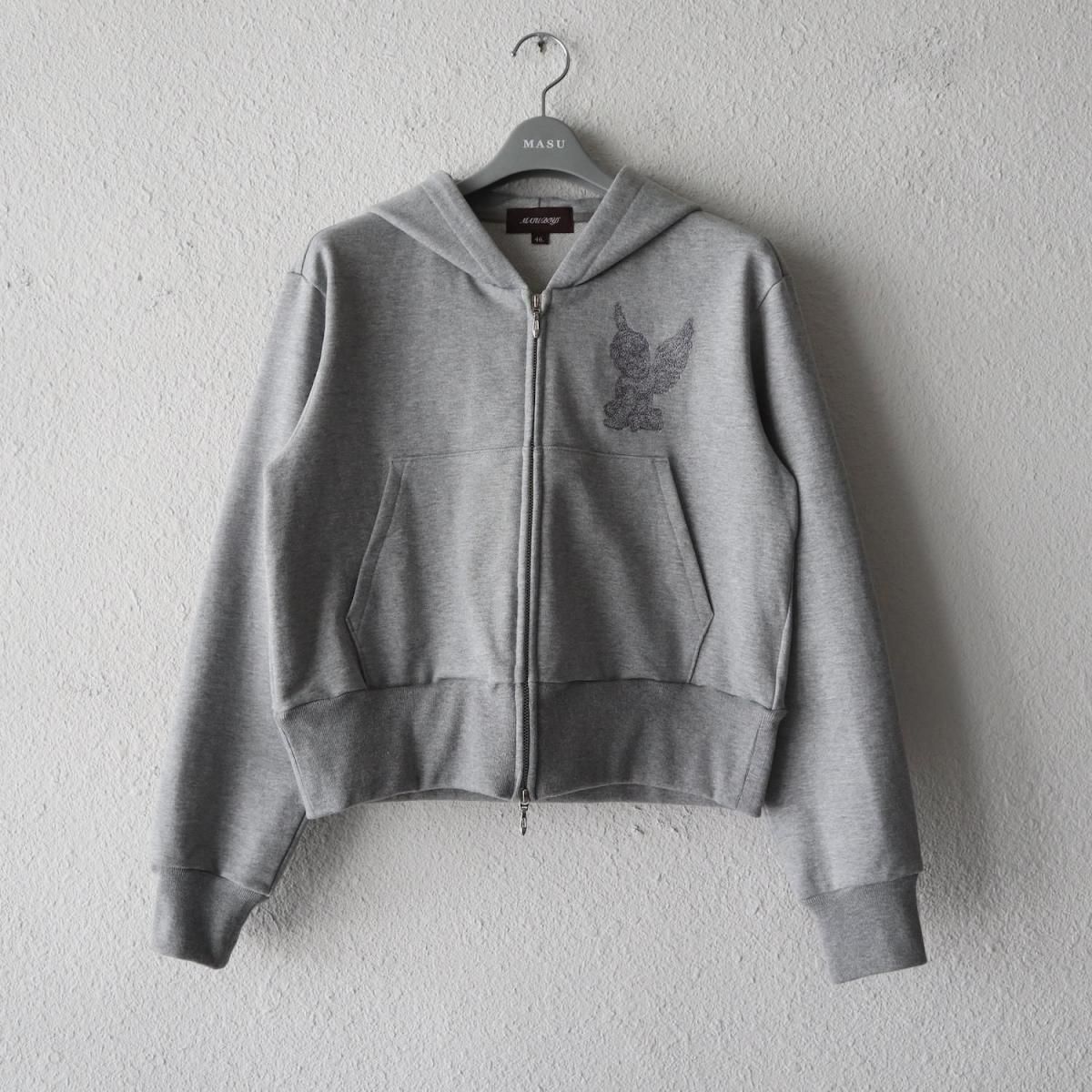 MASUBOYSラインのショート丈のスウェットフーディ。肌触りの良いコットン裏毛を使用。コンパクトめなシルエットが特徴。ブランドから毎シーズンリリースされているワイドシルエットのパンツと好相性。左身頃にはMASUのアイコンである天使を繊細な刺繍で表現しています。