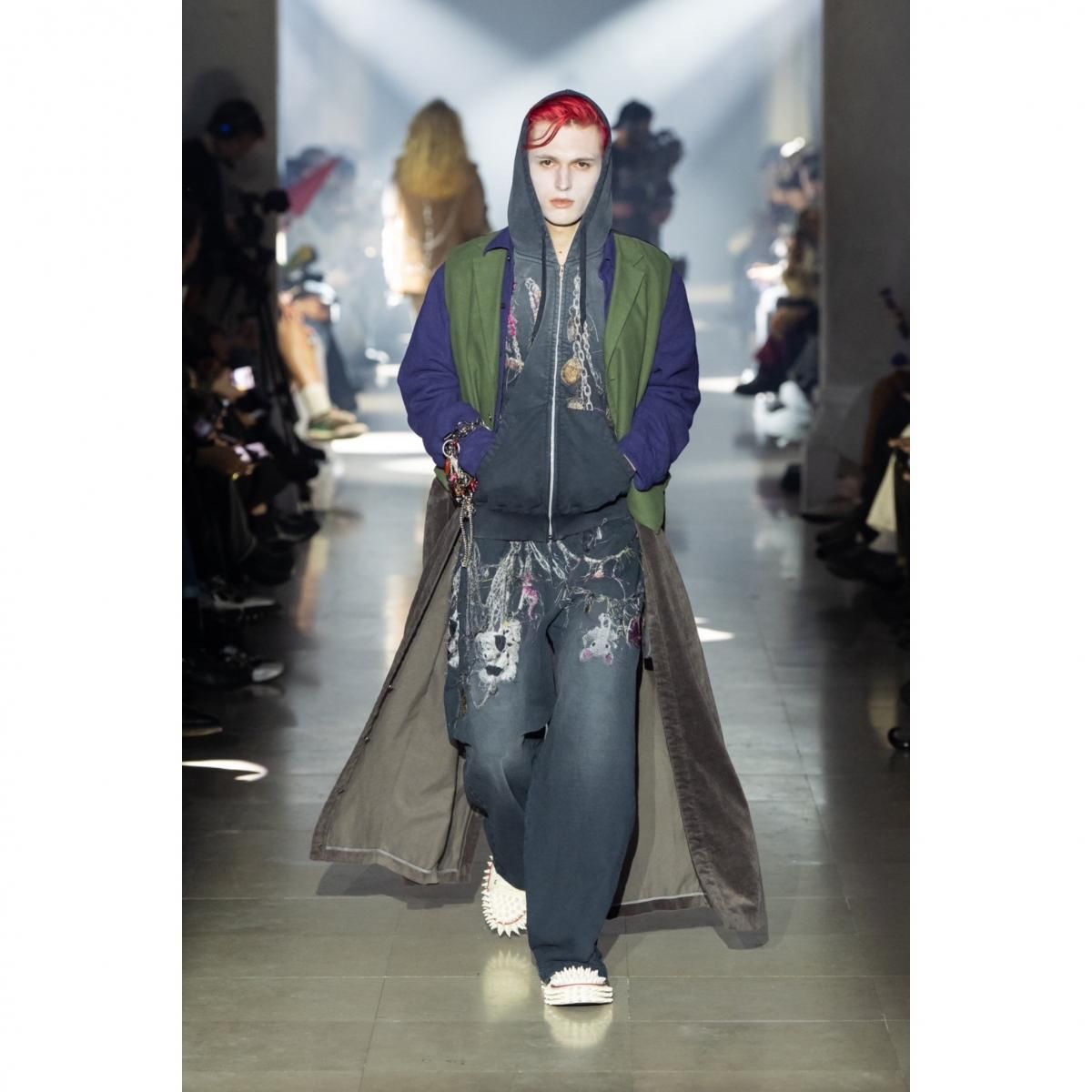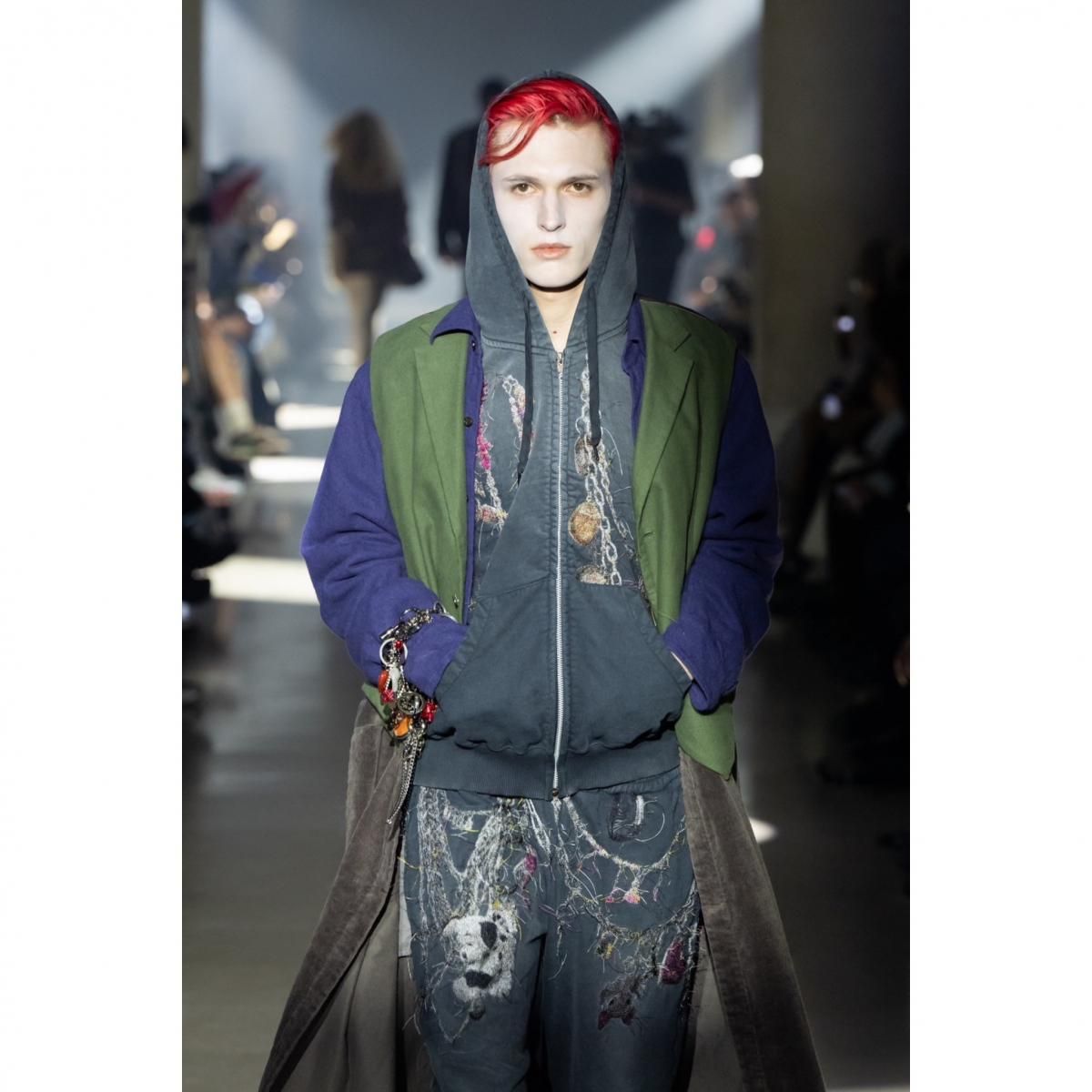 まるでチェーンアクセサリーをまとったかのようなジップアップフーディー。しかし、よく見るとそれは精巧な刺繍で表現されたもの。犬やハートなどのモチーフが散りばめられており、細やかな遊び心が詰まっています。