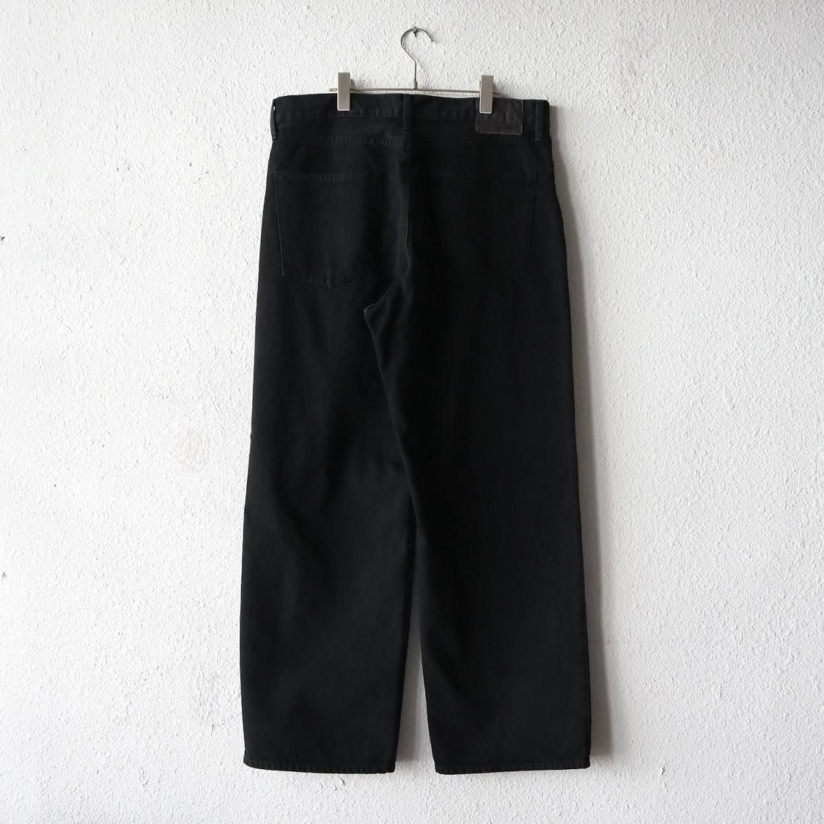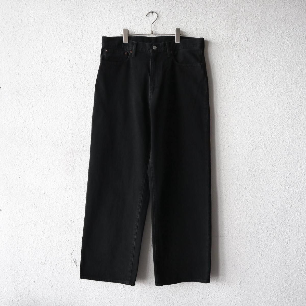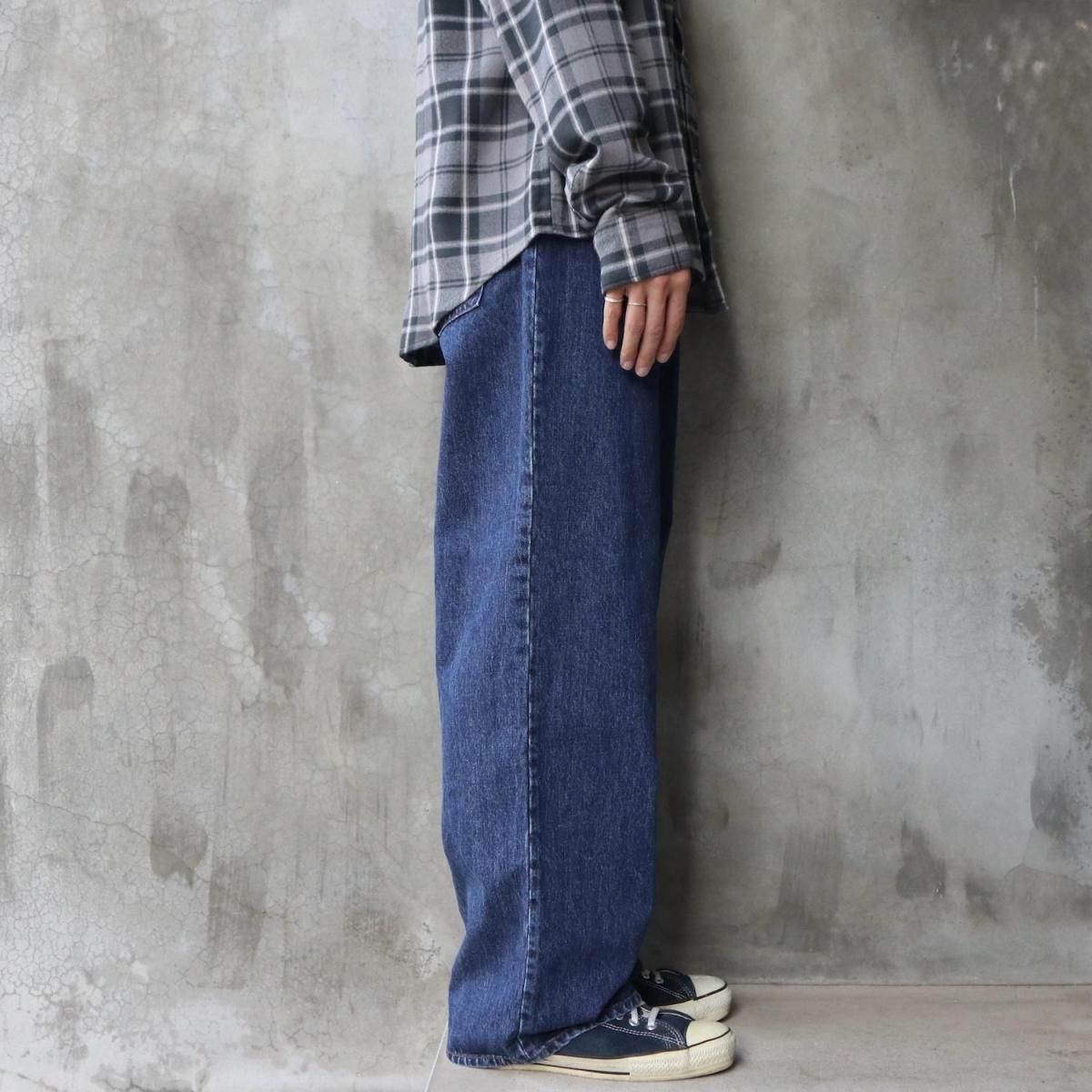 COTTON 100%14oz DENIMTALON ZIPPERBIO WASH & OVER DYE14オンスコットンデニム素材を使用したバギーパンツ。バイオウォッシュ、オーバーダイ加工を施したアタリや色ムラのある生地表情が特徴です。ワイドストレートシルエットになります。(生地の特徴)INDIGO : リーバイス66前期の製品を紐解きリプロダクトしたデニムで、異なる数種のムラ形状の糸を使いタテのシャープなムラ感を再現。BLACK : タテヨコにムラ糸を使用した3/1綾デニムで、程よいムラ感ですっきりとした表情になります。タテ糸はロープ染色により芯白に染まっており、経年変化をお楽しみ頂けます。size 2 : W84 股上40 股下75.5 裾幅26cmsize 3 : W90 股上40 股下77 裾幅26.5cmmodel : 173cm 60kg 着用サイズ2