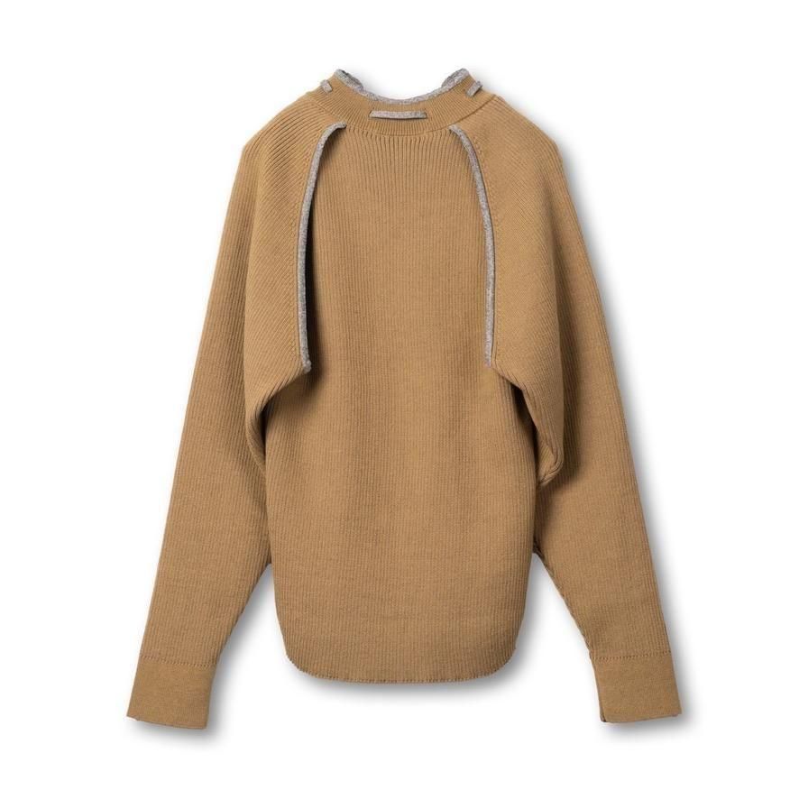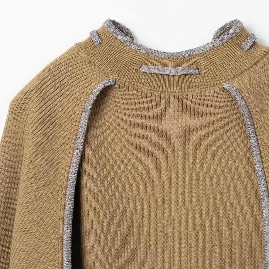 TAN / OPEN SLEEVE V/NECK KNIT TOP