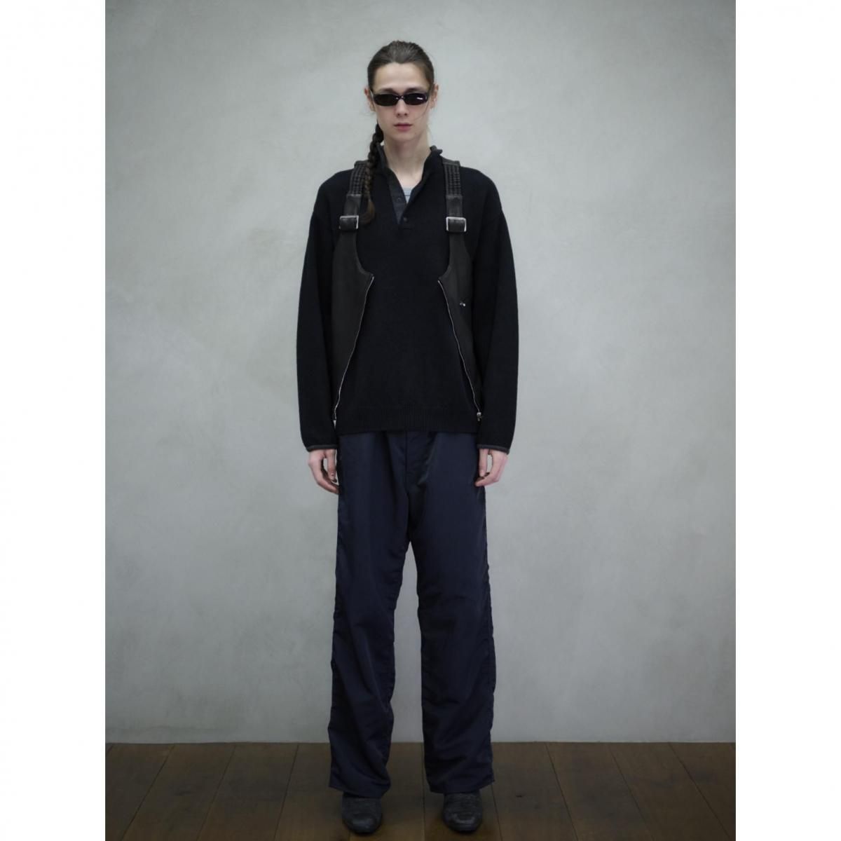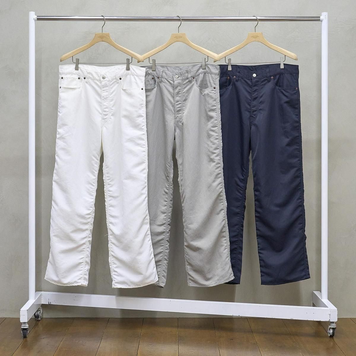 ナイロンツイル素材を使用したナイロンパンツ。独特な質感と快適な着心地を実現したナイロン素材になります。シワをあえてかける加工を施した縫代のパッカリングデザインが特徴です。スポーティーなナイロン素材をデニムパンツの形に落とし込んだUNUSEDらしい捻りの効いたアイテムです。
