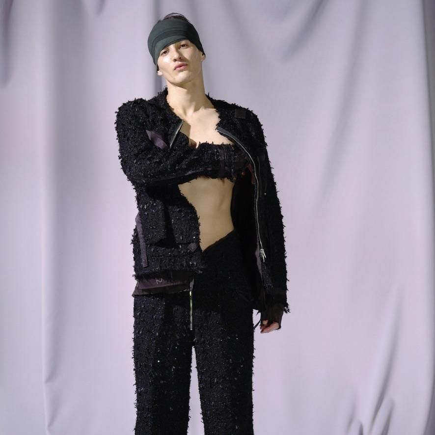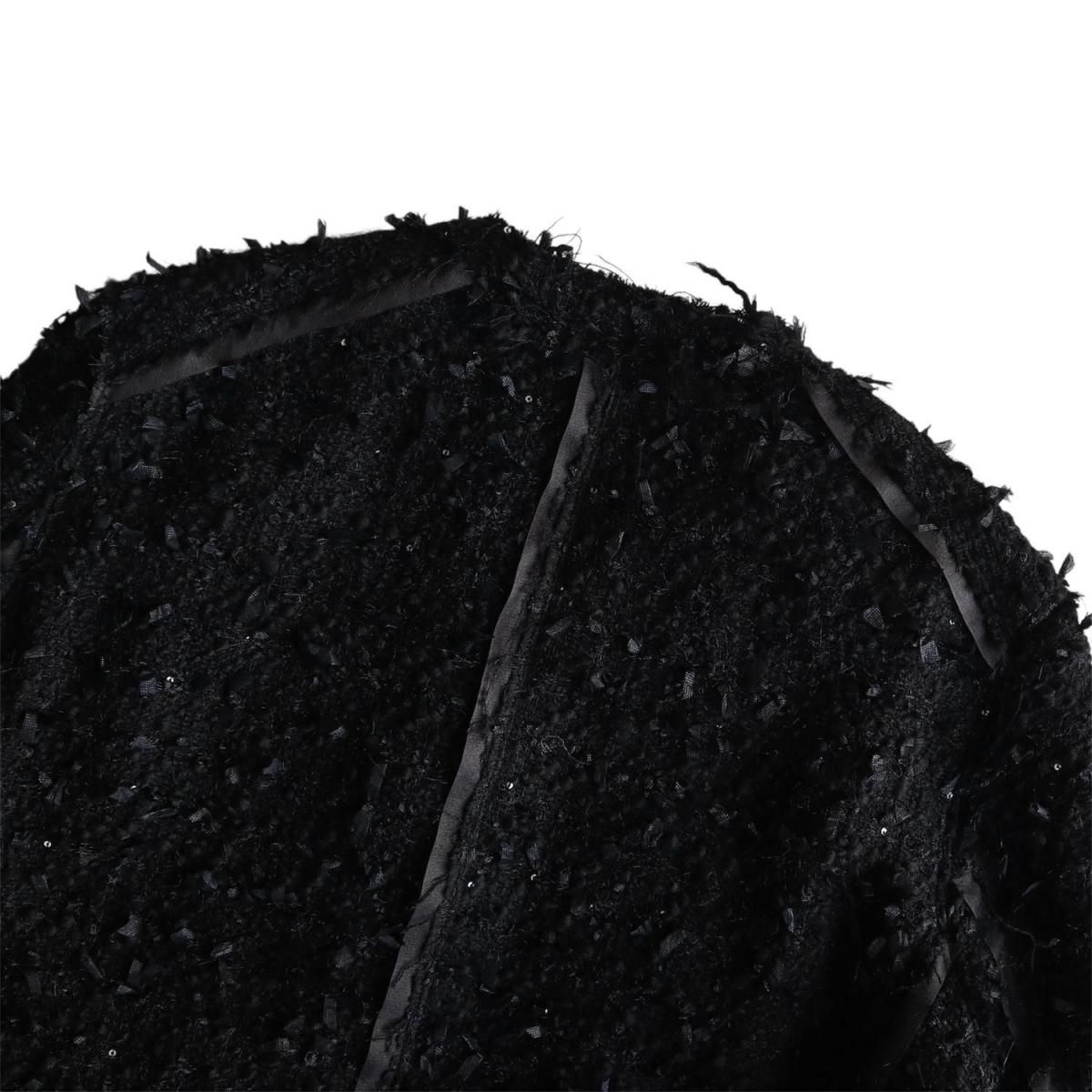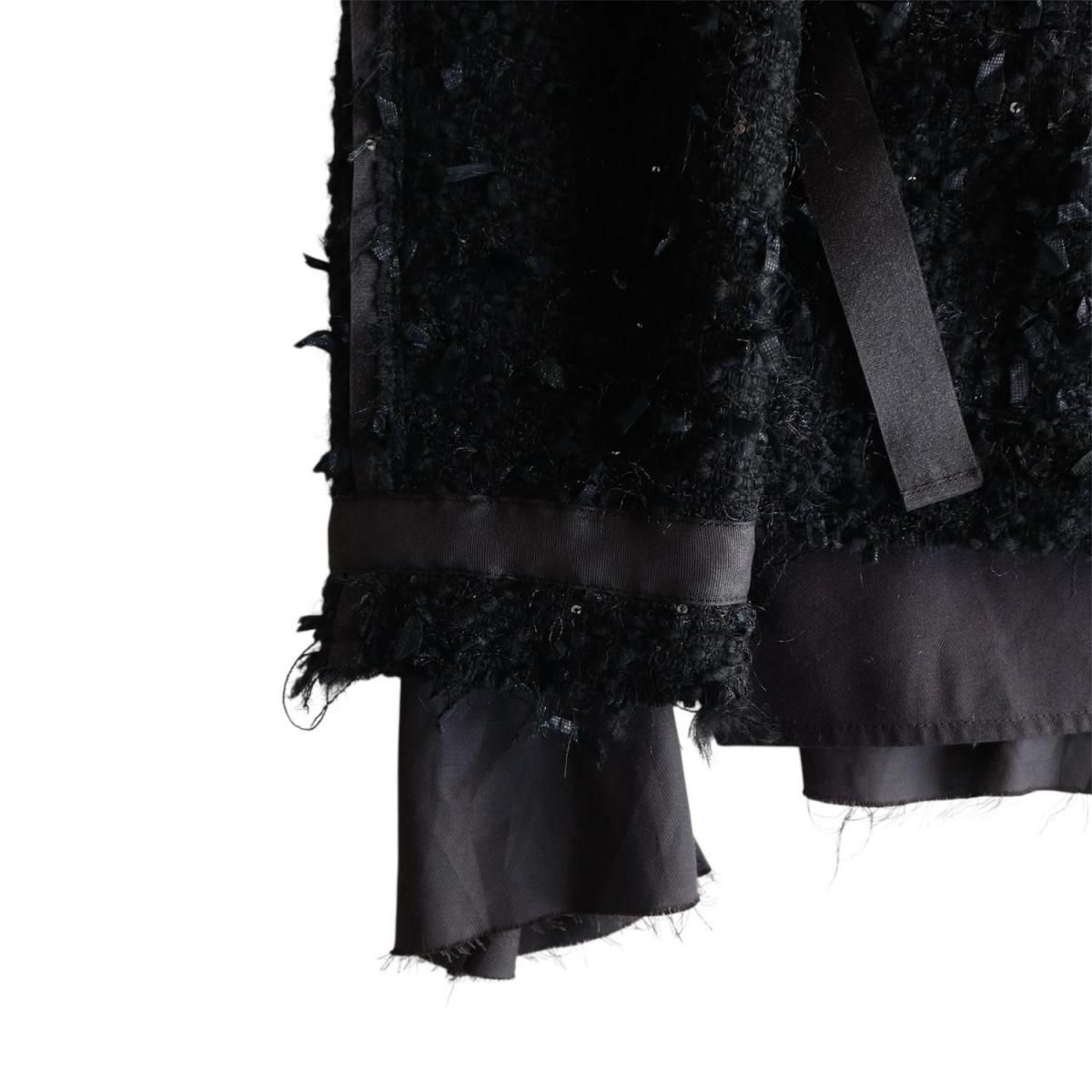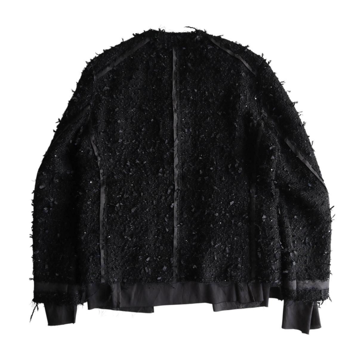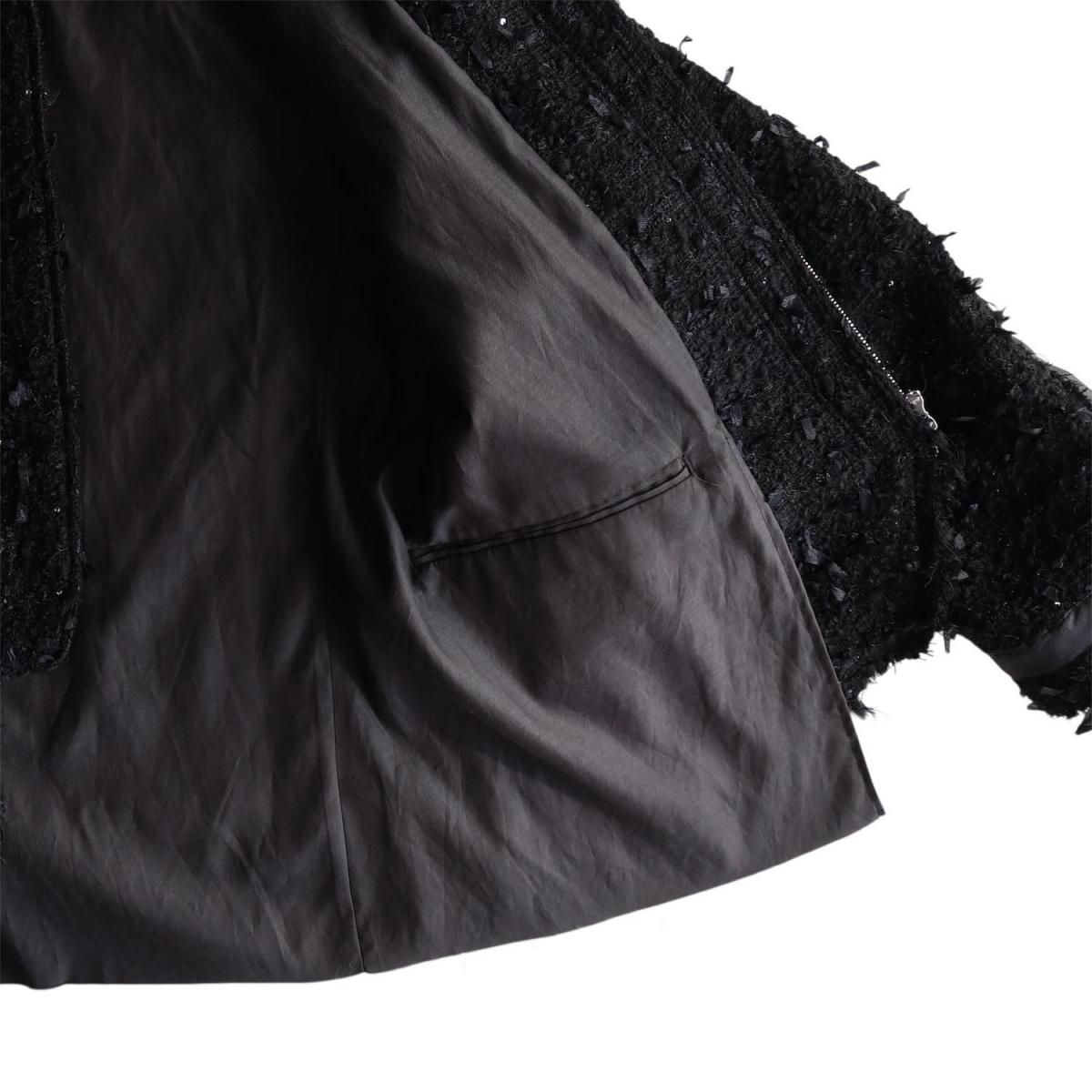 SHELL : WOOL 66% NYLON 22% POLYESTER 8% RAYON 3% ACRYLIC 1%LINING : RAYON 54% COTTON 46%ANOTHER : COTTON 100%MADE IN JAPAN経緯8種類の糸を使用したオリジナルツイードMidorikawaオリジナルツイード素材を使用したノーカラージャケット。経緯8種類の糸を使用したツイード生地に小さなスパンコールとリボンヤーンを織り込んだラグジュアリーな素材になります。下段のポケットはギャザーを施したフラップポケットを採用、随所の縫代にグログランテープを挟み込み、細部への拘りを感じられるデザイン。