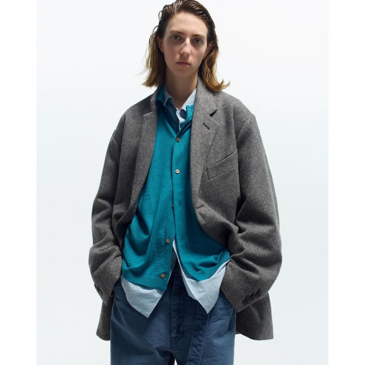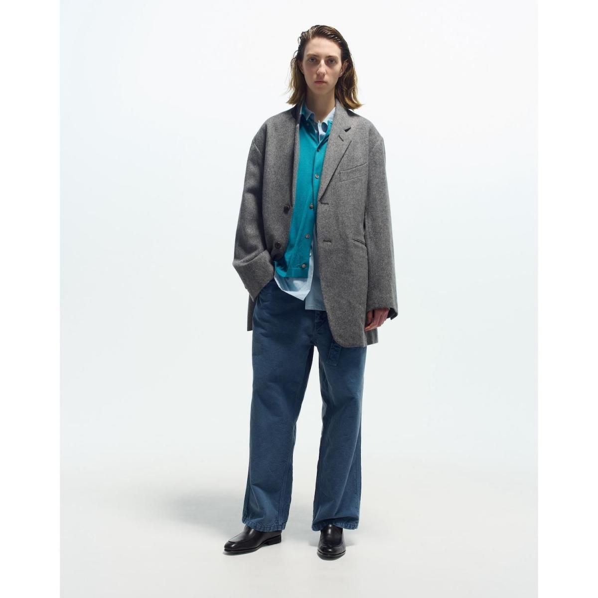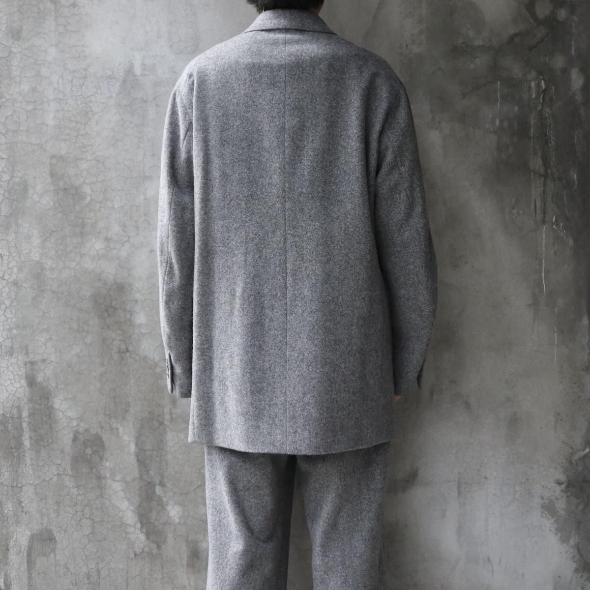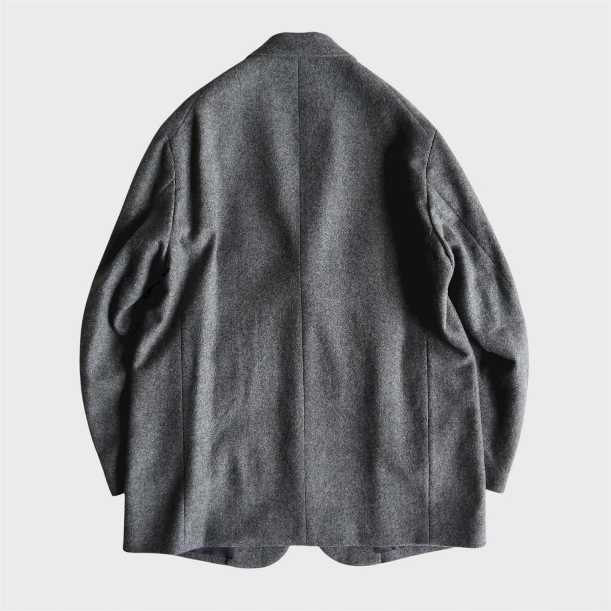 ウールライトツイード素材を使用したオーバージャケット。従来のツイードよりも糸本数を減らし、さらに織密度を変えあまく織り上げたライトな質感のウール生地をオリジナルで開発。縮絨工程にも工夫をこらし、肌触りの良いツイード生地に仕上げています。2ボタン仕様、テーラードカラーは立ち襟でも着用可能。着丈をやや長めにとったオーバーシルエットになります。同素材の1タックパンツとのセットアップもお勧めです。