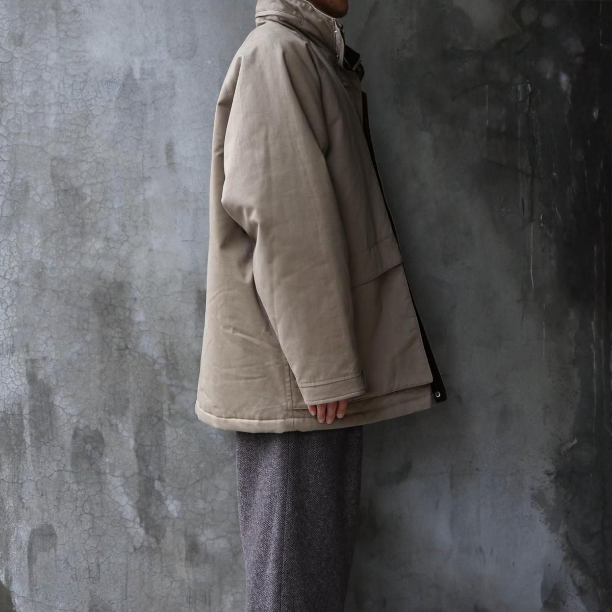 FRONT : COTTON 100%LINING 1 : POLYURETHANE 65% RAYON 35%LINING 2 : POLYESTER 100%OTHER : COTTON 100%PADDING : POLYESTER 100%FABRIC : ORGANIC COTTON CHINOオーガニックコットンチノ素材を使用したハーフコート。size 2 : 着丈81 身幅70 裄丈89cmmodel : 173cm 60kg 着用サイズ2